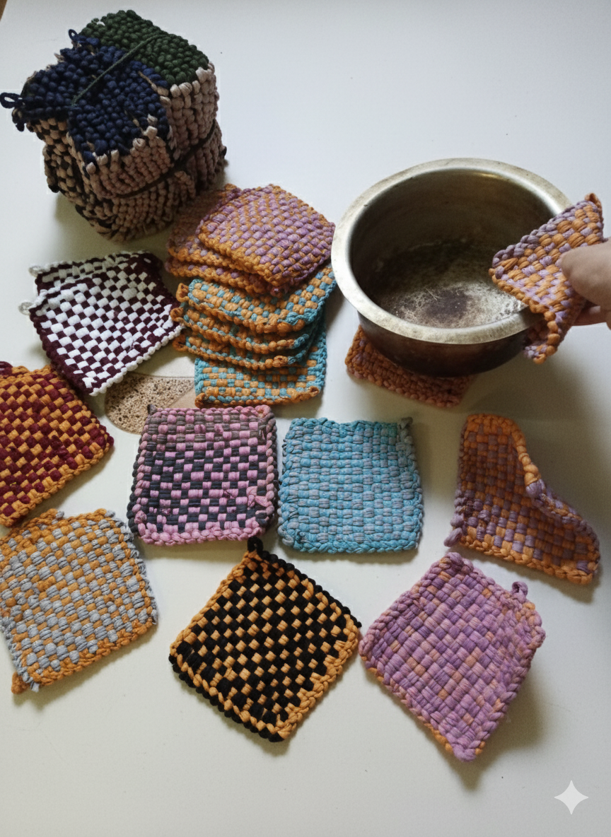 Cempal anyam berbahan bambu alami yang berfungsi sebagai alas panci, wajan, teko, atau rice cooker agar tidak langsung menyentuh meja. Dibuat dengan anyaman rapi, kuat, dan tahan panas. Memberikan kesan tradisional, natural, dan ramah lingkungan untuk dapur Anda.